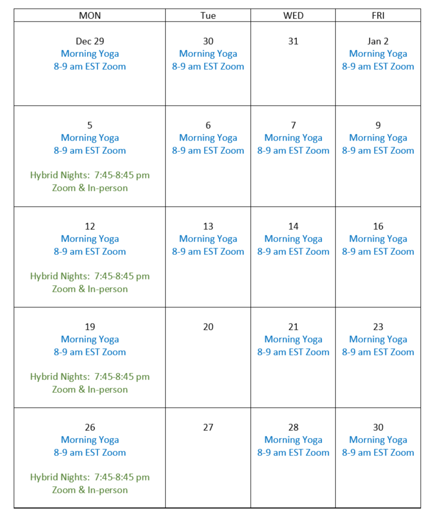 Note: No evening classes on Dec 29. We’ll resume on Jan 5.